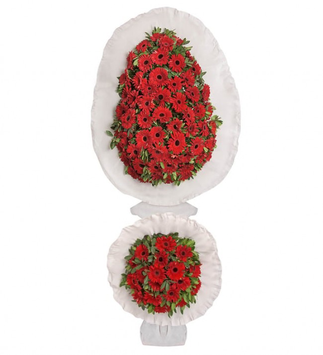 Kırmızı Gerberalar Çift Katlı Çelenk